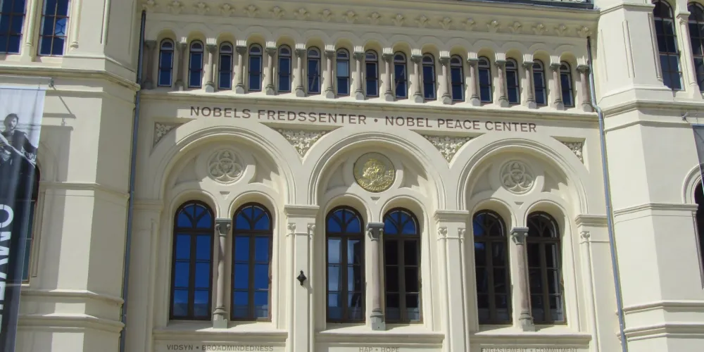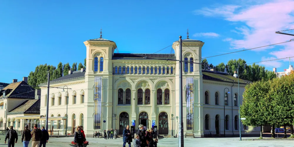 該中心成立於2005年6月,是為了傳播世界和平,提倡反對戰爭而建造的,中心改建在奧斯陸的舊火車站原址上。每年的12月10日,諾貝爾和平獎都在這裡頒布。人們可以在這裡了解到至今所有的諾貝爾和平獎獲獎者的事蹟以及阿爾弗萊德·諾貝爾的生平。