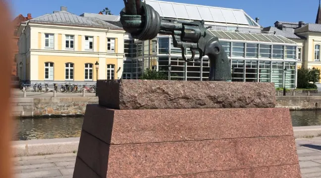 這座雕塑就位於馬爾默市的道路旁邊,以一把槍頭打結的雕塑為主體,表達了人們希望世界和平、自由,反對戰爭的意願。