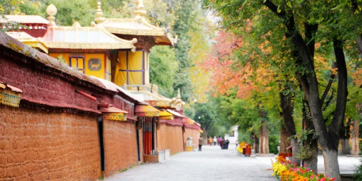 羅布林卡,意為寶貝園林,是歷代喇嘛夏季辦公的夏宮,存有大量的遺跡和珍寶。園內共分為三個區域,分別為東邊入口閣樓的前園區,中部的核心宮殿區和西部以植物叢林為主的金色林卡區。羅布林卡環境優美,植物、花卉種類和數量都很多,樹蔭蔽日,好像拉薩的“世外桃源”。
