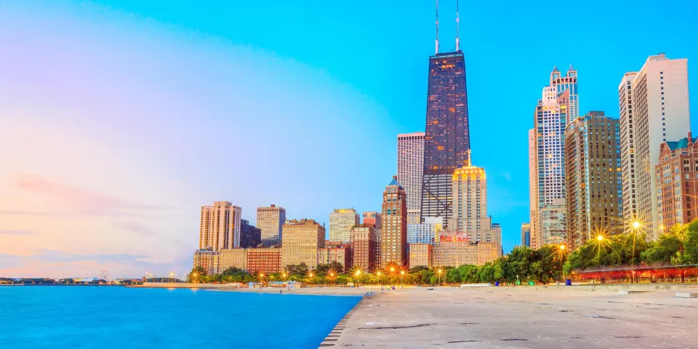 約翰漢考克中心位於芝加哥密歇根大街一側,又稱“芝加哥360°”。是由結構工程師法茲勒汗所設計。在大樓的94樓設有觀景台,能飽覽芝加哥和密歇根湖的景色。約翰漢考克中心目前是世界高塔聯盟的成員之一,其具特色的建築因而獲得多次獎項。其中包括1999年5月,由美國建築師學會所頒發的25年成就獎。