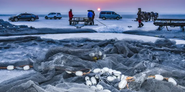 查幹湖北湖漁場每到冬季就是熱鬧的開場,因為這裡會舉行大型漁獵冰釣活動,在活動開始前還會有獨具特色的“祭湖醒網”儀式。