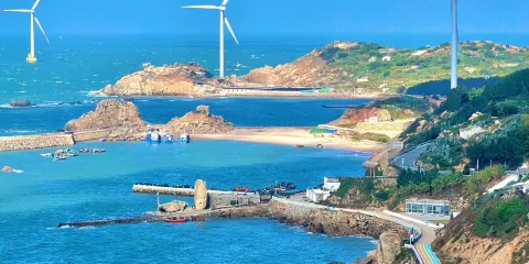 長江澳風力田景觀區是平潭島極具代表性的濱海風光與新能源景觀融合區。這裡依托優越的海岸線和充沛的風能資源,建成了福建規模較大的風力發電集群,數十座高聳的白色風車沿海岸線錯落分佈,形成獨特而壯觀的「風車陣」景觀。景區緊鄰長江澳沙灘,擁有細膩潔白的沙質與清澈湛藍的海水,海岸線上岩礁點綴、防護林成帶,與緩緩轉動的風機共同構成層次豐富的自然畫卷。風車在海風中旋轉,與藍天白雲和廣闊海面相互映襯,使這裡兼具科技感與自然美感,成為攝影與觀光的熱門地點。此外,景區沿著環島公路展開,遊客可在觀景平台或沙灘間漫步,欣賞日出與日落的變化景緻,體驗趕海、休閒漫遊等活動。隨著生態旅遊的發展,這裡不僅展示了清潔能源的應用,也成為體現海島風情與綠色概念的重要窗口,具有較高的觀賞與休閒價值。