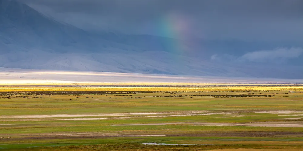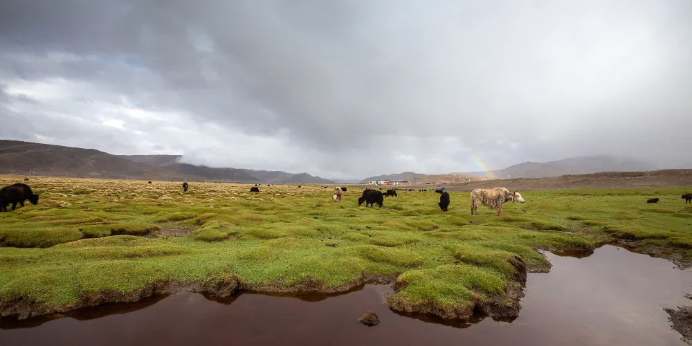 這是一個海拔很高的巨大的台地,濕地上有很多湖泊,植被茂盛,有很多鳥類在這裏棲息繁殖,為高原帶來了一片生機。