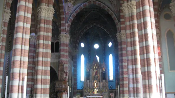 • 主教座堂有著十九世紀哥德復興風格的立面,其外部使用色調深淺不同的白、綠和粉紅多色的大理石塊所鋪砌而成,色彩斑斕而和諧