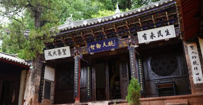 諾鄧文廟建築精緻莊嚴、古樸典雅,裏面大殿“至聖宮”塑的是“布衣孔子”,師長風範、和藹可親,不同於外地文廟塑的都是着帝王衣冠的孔子像。文廟的紅牆外“禮門”上書“江漢秋陽”匾,顯見古代諾鄧文人致遠清高。在供奉“文聖”的孔廟旁還有供奉“武聖人”關公的武廟,可謂是“文武並列”。