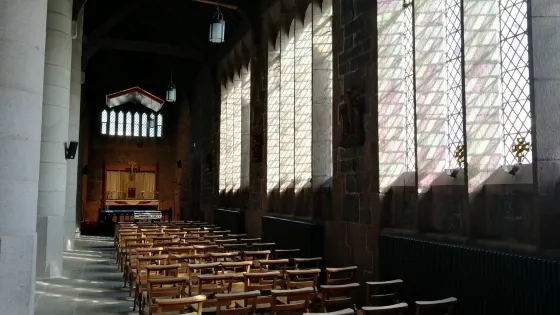 △聖瑪格麗特教堂是愛丁堡現存最古老的建築。它的內部裝修簡單樸素,但是有一扇非常漂亮的彩色玻璃窗,圖案是馬爾科姆三世的愛妻瑪格麗特女王