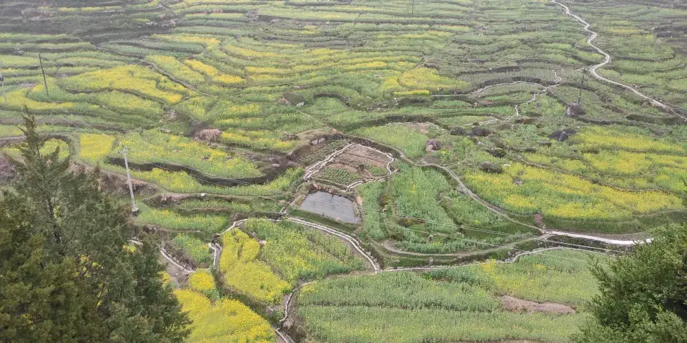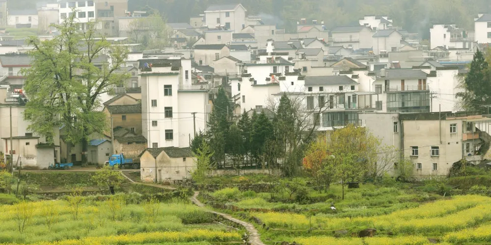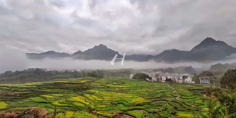 梅幹嶺觀景台視野開闊,是觀千畝油菜花田和大片白牆黑瓦的徽派建築的好地方。