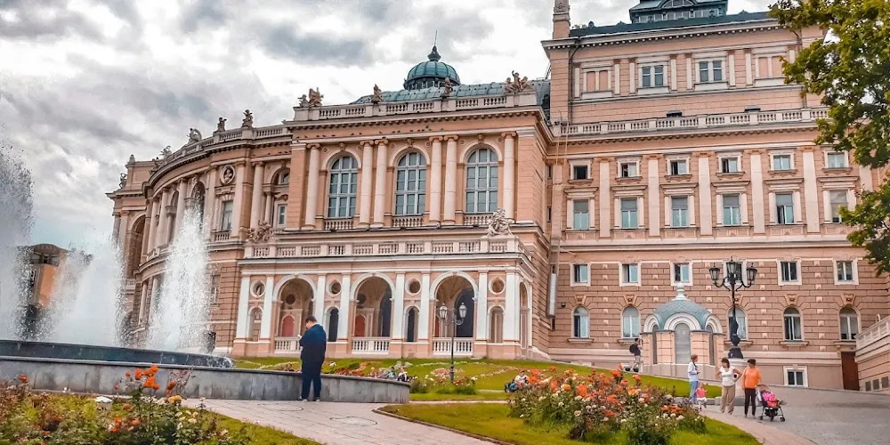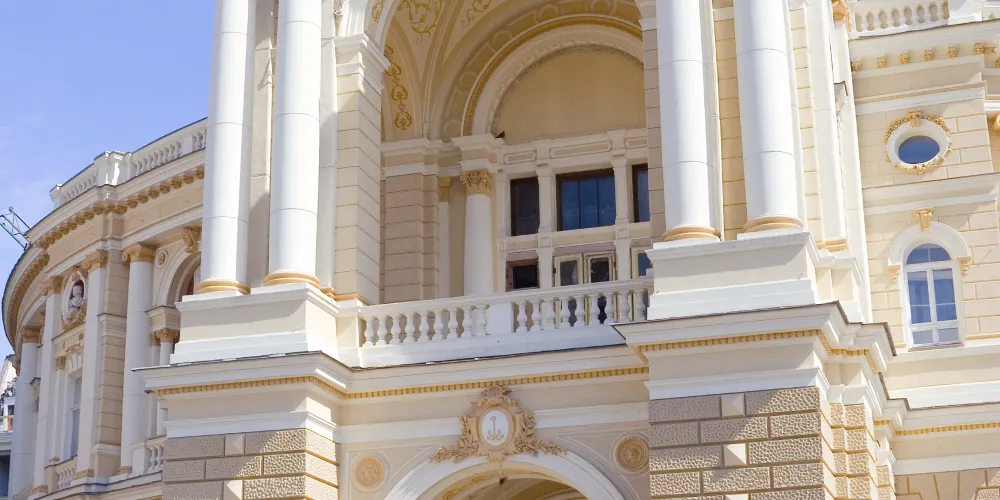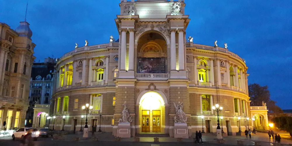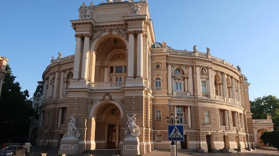 敖德薩歌劇院不僅是烏克蘭最美的劇院,在東歐也是首屈一指的建築。於19世紀初由奧地利建築師設計,帶有濃烈的維也納巴洛克色彩。劇院外形古樸而內部富麗堂皇,從四周的牆壁到樓柱都飾有金碧輝煌的古典雕塑,讓人目不暇接。大廳四壁還繪著莎士比亞名著中的場景。敖德薩歌劇院在曆史上曾兩度遭火焚毀。