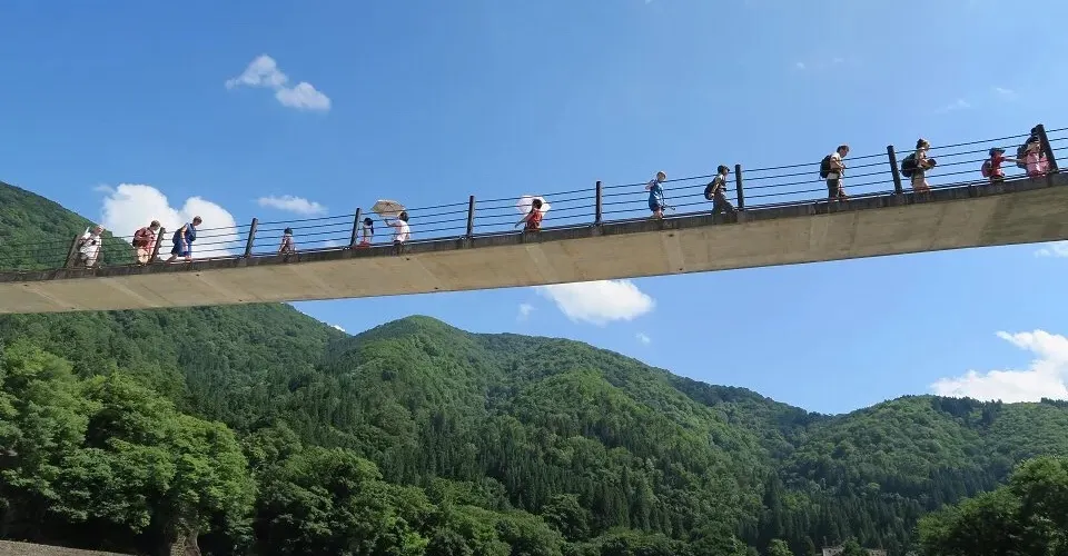 前往白川鄉合掌村的一座弔橋
