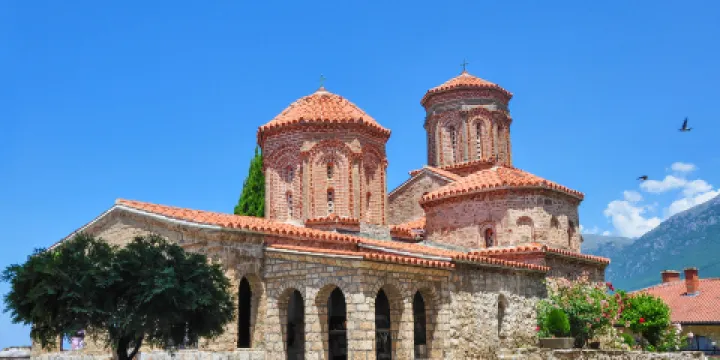 聖瑙姆修道院於9世紀時為修道士瑙姆所建造,其位置正處於馬其頓和阿爾巴尼亞的交界,曾經是一個避難所。修道院的建築結構為拜占庭風格,有多重穹窿屋頂。內部有16世紀至19世紀的壁畫。在這座修道院後面還有着一片處於原始狀態的自然風光。