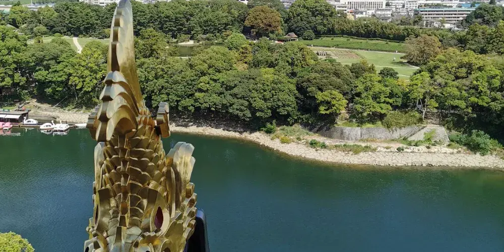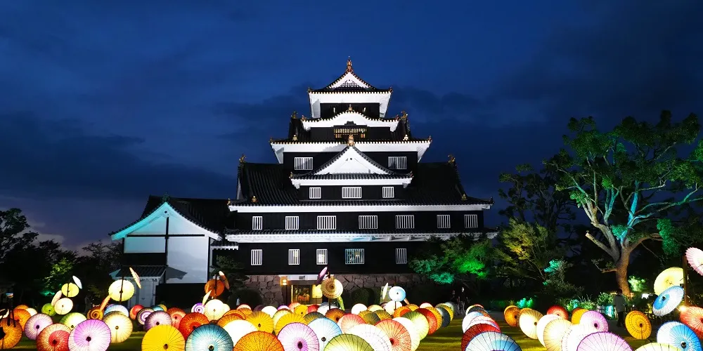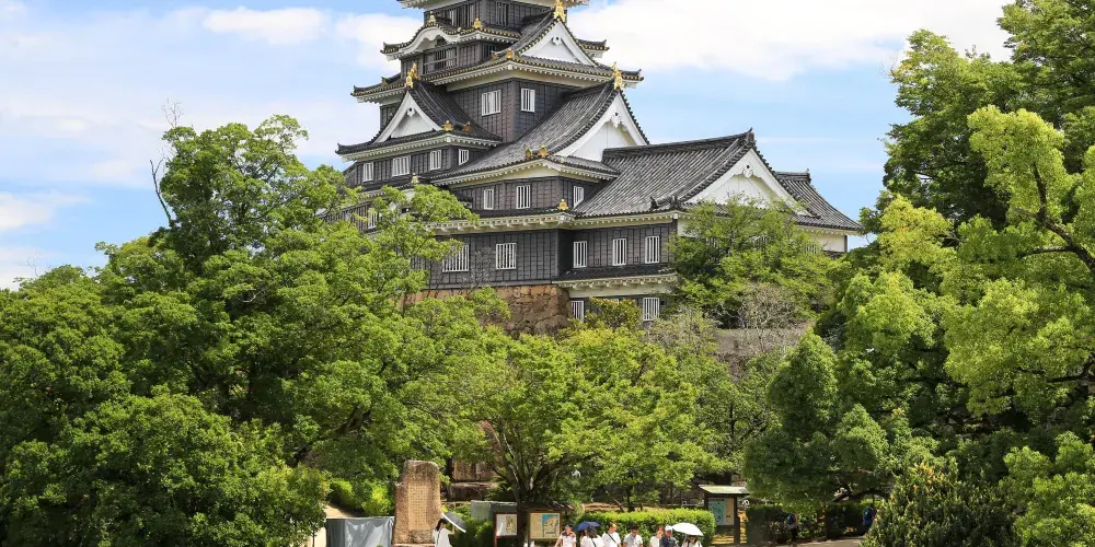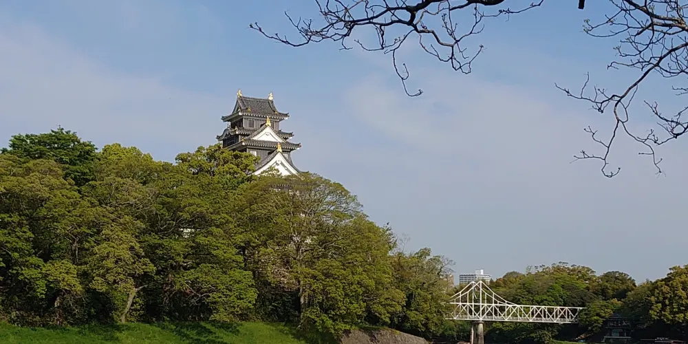 原岡山城遺址改建而成的公園,重新複原新建的岡山城就是公園的中心,三大名園之一的後樂園就在旁邊。在公園內可以看到遺存的一部分月見櫓和石垣。