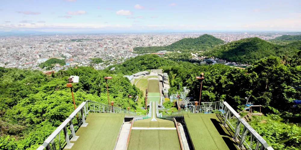 原是大倉財閥第二代總裁、大倉酒店創始人大倉喜七郎男爵捐贈給札幌市的跳台滑雪比賽場,所以,1932年正式開放時被命名為“大倉跳台滑雪運動場”。後來,在為1972年冬季奧運會的舉辦而進行大改建時,改名為“大倉山跳台滑雪比賽場”。從海拔307米的起跳地點,可以望見札幌市街區及石狩平原的全景,在右後方,可望到舉行70米跳台滑雪的“宮之森跳台滑雪競技場”。冬天,是一片白雪覆蓋的“雪白”景色,在沒有比賽的日子裡,遊人可以站在比特於起跳地點後面的“展望休息室”模擬體驗跳台滑雪者起跳時的視線。夏季時用灑水的方法來保證跳台滑雪,所以,在這個全天候的比賽場裡,夏季有時也會看到跳台滑雪者的訓練。
