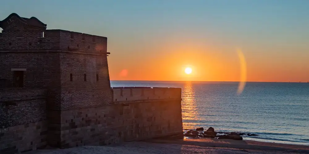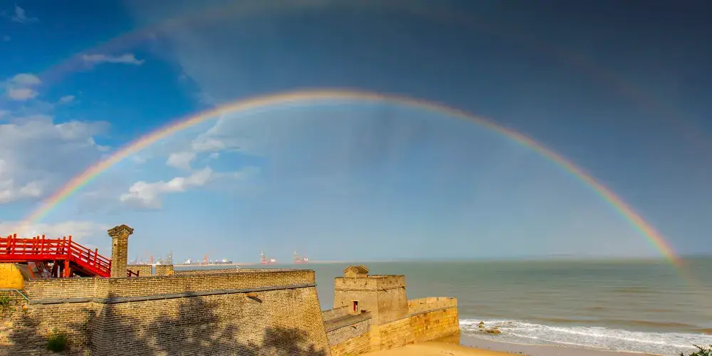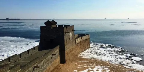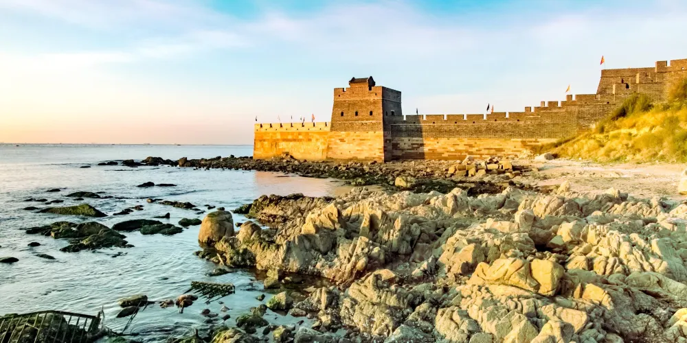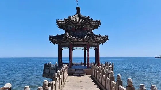 老龍頭位於山海關的東南部渤海之濱,距離山海關景區4公里,是明長城的東起點,也是氣勢恢宏的海上要塞。萬里長城像一條巨龍,橫亙在華夏大地之上,東端在山海關城南直插入海,猶如龍頭高昂,因此稱之為“老龍頭”。