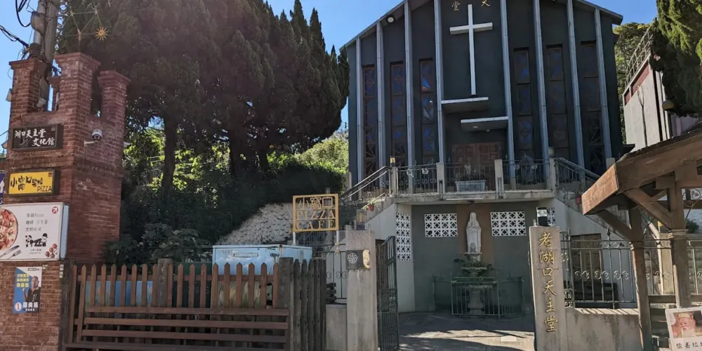 老湖口以三元宮為中心,包含“街頭”、“橫街”與“新街”3條街,大約在1920年,新街就是我們現在所稱的湖口老街。湖口老街的房舍全部以紅磚為建材,老街的建築式樣較為特殊,牌樓立面屬於羅馬巴洛克建築,架構采閩南式,兩側為長條形店鋪住宅。老街房舍的內部格局因應住宅與店鋪的混用,一進為店面,第二進為住家,兩進間的深井為廚房之所在。在台灣現存的老街中,湖口老街中拱形的門廊戶戶相對,街屋整齊一致都設有騎樓,一樓柱節單拱走廊,二樓窗戶和女兒牆間有水泥楣點綴,商號名稱鐫刻其上,簡潔大方。走完湖口老街宛若曆經一部模糊的曆史。湖口人的宗教信仰老街上有幾座不同姓氏的家廟,迄今在老街尾端的三元宮一直以來是居民的凝聚中心。