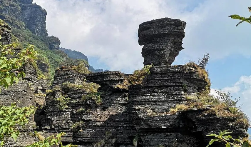 還有,梵凈山景區-蘑菇石這處景點是梵淨山主要景點的交匯處: 站在這裡,可以遠眺周圍群山,近觀老金頂和紅雲金頂、梵淨山景區-拜佛台、普渡廣場、九皇洞,還可與梵凈山景區-蘑菇石、翻天印親密接觸,拍照留影。