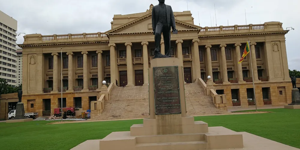 當年在建造這棟國會大廈(當時稱立法會大樓)時, 時任英屬錫蘭總督的Sir Henry McCallum先生提出在加勒菲斯北段填海興建的大膽想法。同時為了方便政府各部門之間的溝通銜接,除了立法會外,數個政府機構也在大樓附設的裙樓裡辦公,直至1948年2月4日斯裡蘭卡正式宣布獨立,定國名為錫蘭。1972年5月22日錫蘭正式改國名為斯裡蘭卡。