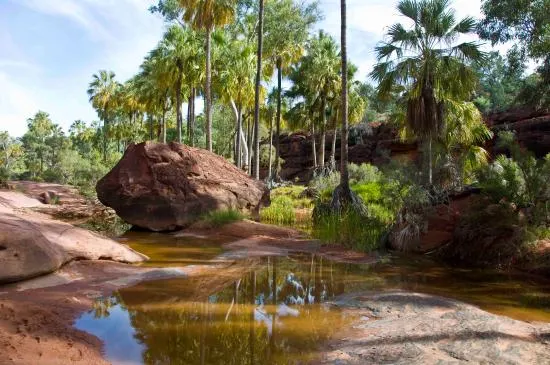 則評價這裡是一片面積達145000平方公里的辛普森沙漠,這片無垠的沙漠,在太陽的照耀下會呈現出一派壯麗奇幻的瑰紅,也由此,被評為地球上十大美麗沙漠之一。這裡有名的景點是那塊大紅巖,即艾爾斯巖(烏魯魯),艾爾斯巖高達348米,圓周9.4公里,是世界上較大的整體巨石。紅巖一天中不同的時間、不同的氣候條件下,顏色會產生不同的變化:從黑到紫、藍到棕、鮮艷的橘黃到紅色,蔚為壯麗。日出日落下的大巖石給人印象深刻。遊玩方式及娛樂:遊客可以在此區域遠足、野營或駕駛四驅車。叢林徒步、在瀑布下游泳、體驗土著文化也各具特色,各有精彩。遊玩貼士:1、進入烏魯魯-卡塔丘塔之前應事先獲得許可證,入口處有提供;在指定的地區紮營,離開時要帶走所有垃圾;2、叢林徒步時,請在有標誌的路上行走,穿牛仔褲和結實的鞋會比較舒服。3、禁止在水中或水邊使用肥皂和清潔劑。4、所有的文化項目和野生動物都受到保護,不要給動物餵食。5、這裏屬於半乾旱地區,飲用足夠的水是很重要的,每天至少要喝2升。6、艾麗絲泉、騰南特克里克和烏魯魯夜裡會比較冷,所以需帶禦寒服。