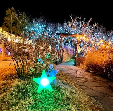 利川星光庭園OOOZOOO以五光十色的燈飾作為主題,用燈光呈現出十座宇宙相關內容。園內分為多個不同展區,帶出不同色彩。