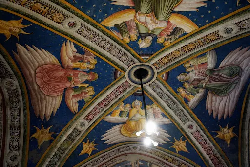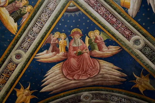 上下兩座教堂裝飾以中世紀後期羅馬畫派和托斯卡納畫派眾多畫家所作的壁畫,喬托、契馬布埃以及當時其它意大利藝術家都在這裡創作,並開始了從拜占庭藝術的矯揉造作風格到促使文藝複興達到高潮的自然主義風格的轉化,作品的範圍和品質使得這座聖殿成為這一時期意大利藝術發展的重要見證。