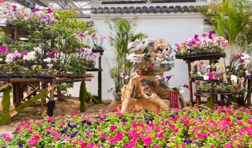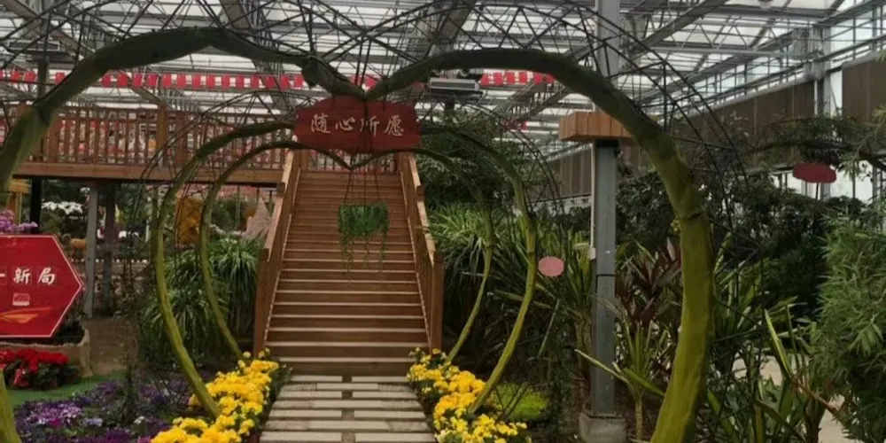蘭趣園智能温室佔展廳佈置共用蘭花8萬株,規劃設計了三大功能主題區,六十個景觀節點,一改國內歷來蝴蝶蘭展館的布展風格,在充分彰顯蝴蝶蘭、大花蕙蘭、卡特蘭、兜蘭、石斛蘭以及各種國蘭品種所呈現的蘭花特有“韻味”基礎上,國內設計師充分挖掘、提煉、創意了眾多具有中國傳統文化與地方人文元素的景觀節點,是淮安特色蝴蝶蘭展館。
