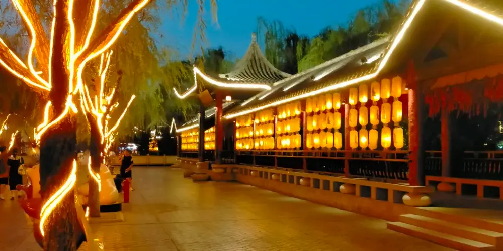 4、梨園遊記:採用無軌纜車,配合現場實景與影視相結合的遊覽方式,將我國部分地域有代表性和觀賞性的一些戲劇和曲藝項目進行展示。打破傳統的戲曲表演形式,採用全新科技手段再現經典戲曲片段,將遊客帶入經典的戲劇殿堂,身臨其境感受京劇、黃梅戲等傳統魅力。(適合所有身高,小童及65歲以上長者須成人陪同)