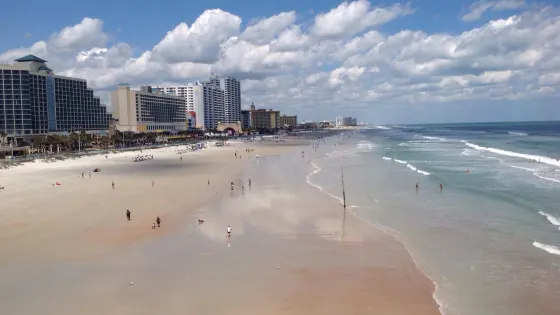 這片海灘綿延約 24 公里,沙質細膩柔軟,海水清澈湛藍,全年溫暖宜人的氣候,吸引無數遊客前來享受日光浴、游泳、衝浪等水上活動。尤其是衝浪運動,Cocoa Beach 被譽為 “美國東海岸衝浪之都”,穩定的海浪條件讓這裡成為衝浪愛好者的天堂,每年都會舉辦各類衝浪賽事,熱鬧非凡。除了自然風光,Cocoa Beach 還與航太緊密相連。它距離美國國家航空暨太空總署(NASA)的甘迺迪太空中心僅一箭之遙,遊客可以在海灘上親眼目睹火箭發射的壯觀場景,感受人類探索宇宙的偉大力量。