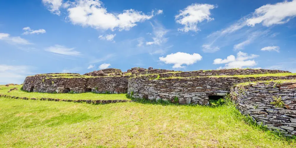 鳥人村遺址位於智利復活節島的拉諾考火山口邊緣,是重要的考古和文化遺址。這裡曾是復活節島上鳥人文化的中心,鳥人競賽在此舉行。遺址由50多個石屋組成,建築風格獨特,石牆上刻有精美的岩畫,描繪了鳥人和神話生物的形象。