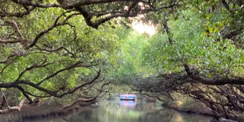 你可以坐擁全台種類數量之冠的紅樹林濕地生態,搭觀光漁筏悠遊四草綠色隧道,一窺天使之吻、綠色之眼的獨特仙境。