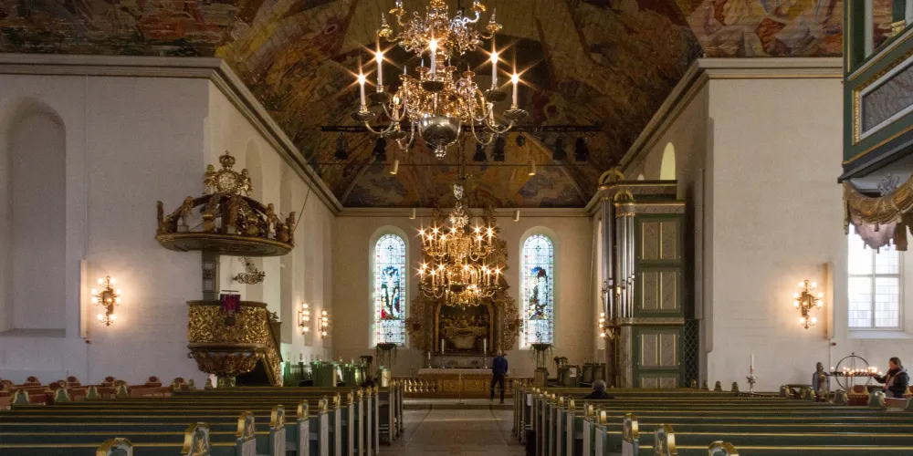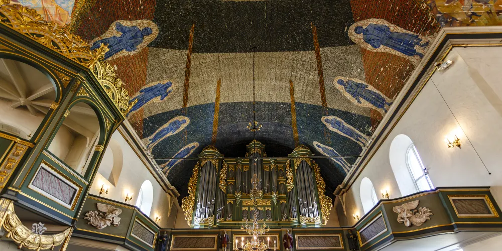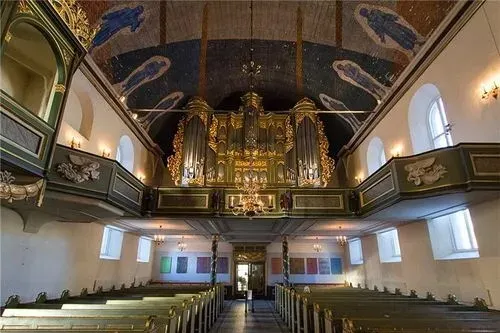 教堂內的彩繪玻璃是由雕刻家古斯塔夫·維格朗的弟弟伊曼紐爾·維格朗精心設計的,美崙美奐,值得細細品味。此外,教堂內的大管風琴由6000支原木管子組成,彈奏時聲音空靈聖潔。