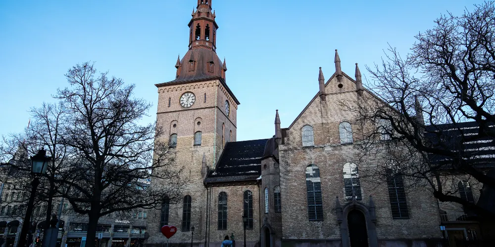 奧斯陸主教座堂建於1697年,由禮拜堂及塔樓組成,內部裝潢到1720年左右才竣工,19、20世紀時又經過一番整修。現在呈現在世人面前的奧斯陸主教座堂沒有繁複的雕刻裝飾,簡潔大氣,荷蘭風格的紅磚牆給常年寒冷的挪威更添了幾分暖意。