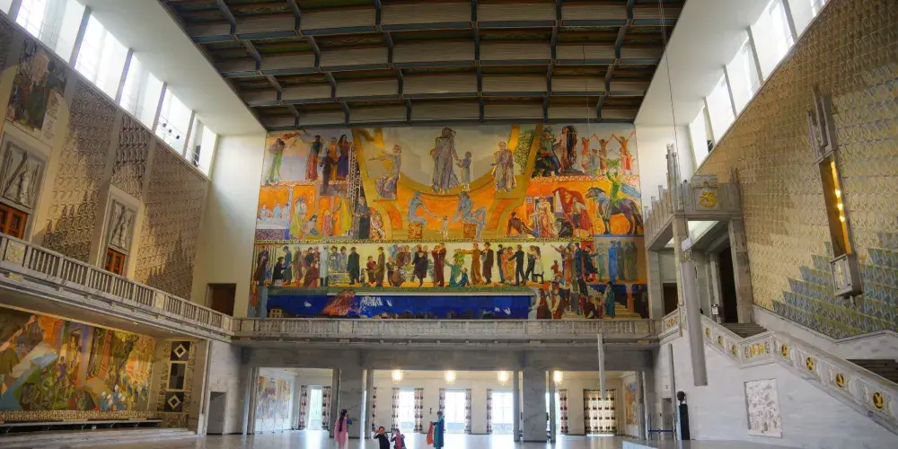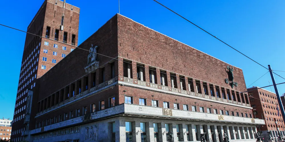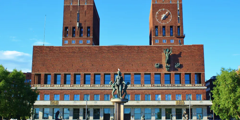 奧斯陸市政廳是一座磚紅色的建築,是於1950年為慶祝奧斯陸建城而建造,它由挪威的藝術家們不斷地裝飾和潤色才得以完工。市政廳內部的多個大廳分別展出著多位藝術家的作品,全面地向人們展示了挪威的歷史、文化以及人們的工作和生活。這裡的每個房間都很特別,家具擺設、人物壁畫、也可以透過窗戶看到海景,讓觀光客感受到其歷史的氛圍。
