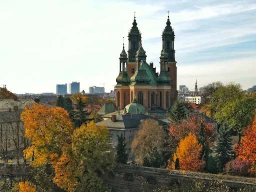 立面三層拱形窗,立面頂三座小穹頂,正堂一座大穹頂,這就是波茲南的市政廳。目前地下室仍然保留十三世紀的原始結構。這裡的曆史博物館展示了波茲南自公元11世紀至1945年的曆史。