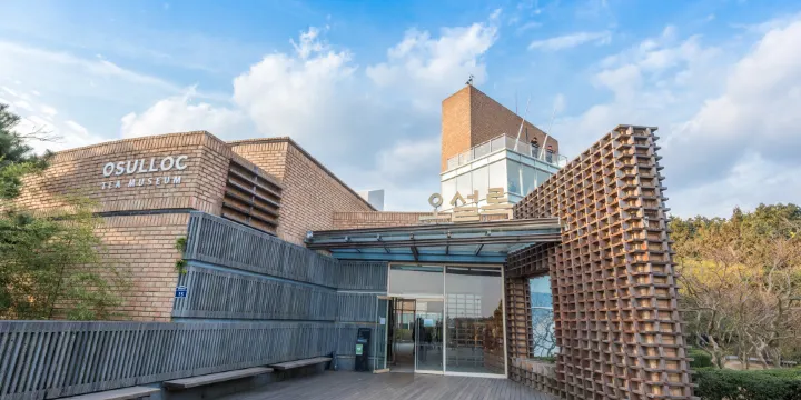 濟州雪綠茶博物館以綠茶為主題,是了解韓國傳統茶文化的好地方。它不僅以其由茶杯組成的建築特色而聞名,東西方的傳統與現代文化也在這裡得到了和諧的交融。優美的自然環境使其成為絕佳的休憩場所。從濟州島市中心開車約一個小時即可到達博物館。一下車就看到一棟很有設計感的建築。 O’Sulloc的雪綠茶LOGO搭配淺棕色色系,感覺非常清新。博物館分為兩層。一樓主要是杯藝廊、茶文化展廳、禮品店和休息區。走進博物館,你會發現牆上掛滿了紙杯,每個杯子上都畫滿了創意塗鴉。這些是來到博物館體驗相關活動的孩子們留下的紀念品。一樓大廳有一組小盆栽。進入左側是茶文化展示館,在這裡可以了解韓國茶文化的變遷與發展歷史、茶的傳播方式、茶的製作過程、茶文化等。不同時期、不同國家的茶具種類繁多。整個亭子不大,呈圓拱形。走在原木色地板鋪成的走廊裡,彷彿有種穿越時空的感覺。參觀完茶文化展覽館,有一家禮品店,裡面賣很多綠茶衍生品,例如特有的綠茶洗面乳等護膚品,價格在10000-20000韓元之間。當然,綠茶禮品包括可以用冷礦泉水浸泡的冷泡綠茶、綠茶奶茶、焦糖味花果茶、可以直接沖泡的綠茶粉等。包裝精美,價格5000~10000韓元不等。逛完逛累了,可以到休息區坐下來,買一杯著名的綠茶冰淇淋,或者加一塊綠茶蛋糕,價格4500韓元,找個靠近泳池的座位,坐下來看池裡的魚兒,孩子們在荷花裡嬉戲,享受悠閒的下午茶。博物館二樓是露天平台,經常舉辦各種藝術活動。站在平台上看看周圍的風景,非常愜意。此外,博物館門前還有一大片綠草地。天氣好的時候,可以躺在躺椅上曬太陽,抬頭看看藍天。這裡還有一家Innisfree店,號稱有限量版綠茶化妝品。有時間的時候可以去參觀一下。另外,參觀完博物館後不要急著離開。可以去對面的綠茶園看看李敏鎬的悅詩風吟廣告就是在這裡拍攝的。茶園門口有兩個巨大的綠茶杯,很多遊客都會在這裡拍照。