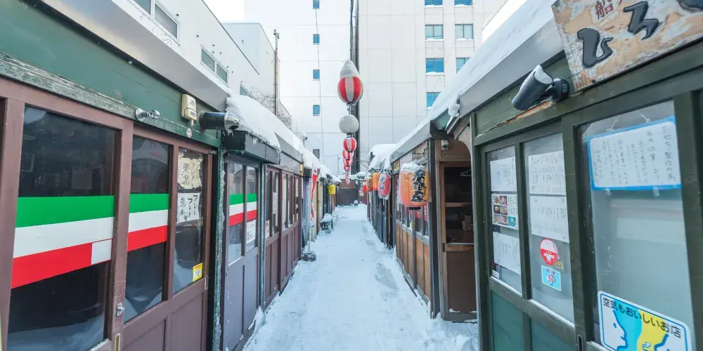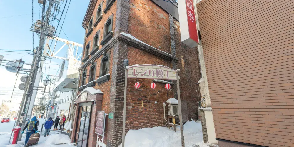 小樽屋台村紅磚橫丁集中了經營壽司以及其他海鮮料理等小樽美食的14家店鋪,可以在懷舊的氣氛中,以合適的價格品嘗小樽當地美食。這裡都是與店主近距離接觸的小吃鋪,所以很容易親近,可以聆聽店主推薦的當地資訊、景點等,也是一大魅力。許多店鋪都是傍晚以後開店。
