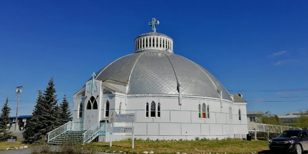 位於Inuvik市中心的TheIglooChurch可能是西北地區非常具標誌性、被拍照次數較多的建築之一,它是一個白色的圓柱形建築,頂部有一個銀色的穹頂,模仿着inuviit古老的雪屋,室內展示了當地藝術家莫娜·思拉舍的畫作。
