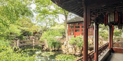 “中國四大名園”之一,世界文化遺產。拙政園以水景見勝,凸現江南水鄉風貌,典雅大方。各式古建大都臨水而築,錯落有致,幾乎沒有相同的。花園總體分為東、中、西三部分,各具特色,尤其是中部花園,基本保持明代園林樸素自然的風格,為全園的精華。