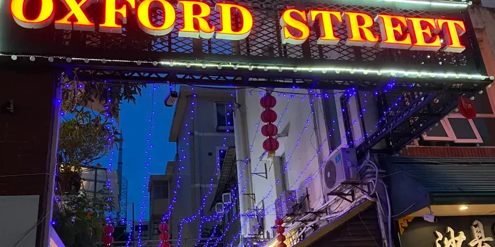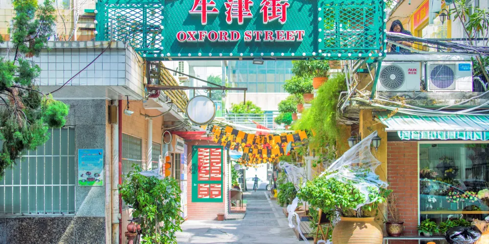 牛津街地處珠海的灣仔沙,旁邊就是珠海大會堂,是一條頗有歐洲風情的商業小街。街區從頭到尾不過幾十米,充滿了濃郁的文化氛圍,吸引了很多遊客來此觀光拍照。小街上的店鋪也非常個性,多售賣一些陶瓷工藝品、品味家居飾品,到了周末還有創意集市,遊玩途中總是會有一些意外的驚喜。