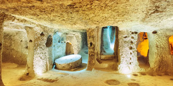 奧茲庫納克地下城位於阿瓦諾斯鎮以北約15公里處,相比卡帕其他兩個有名的地下城,這裏的規模更小,遊客也較少,但內部構造和設施同樣齊全。