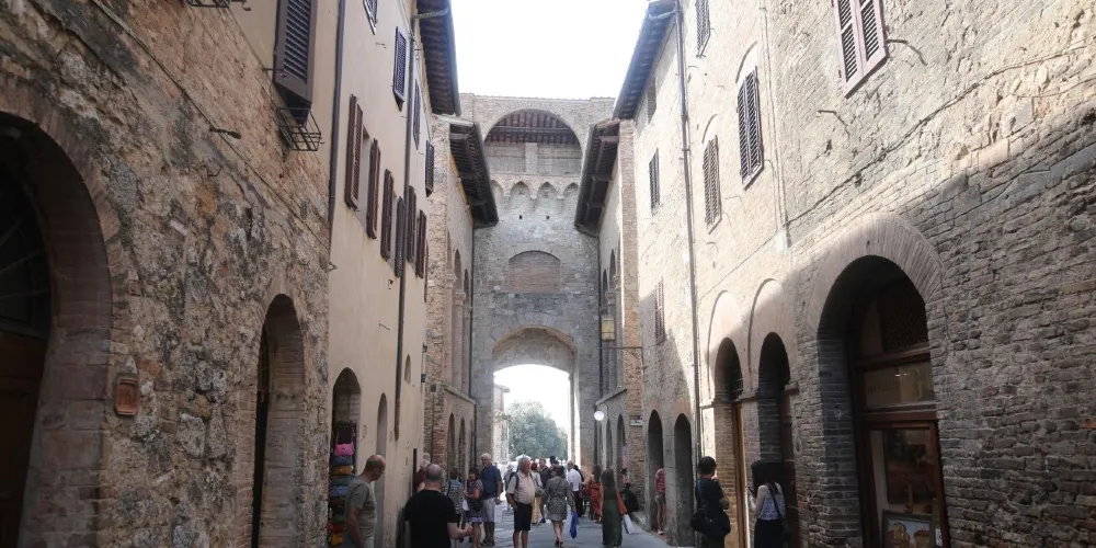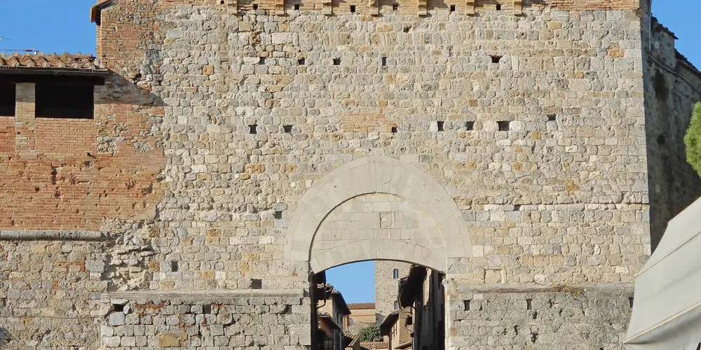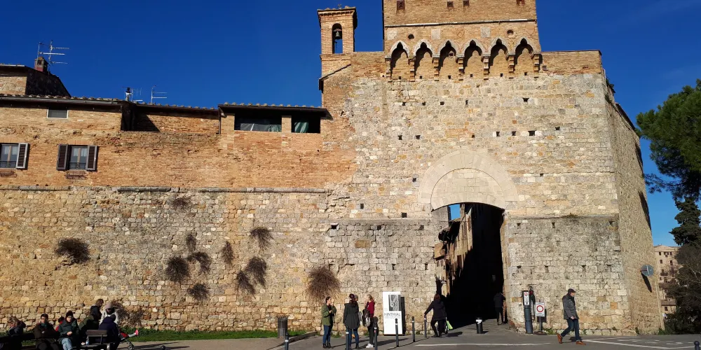 聖吉米尼亞諾城外環繞有圍牆,主要入口有兩個城門。南面的城門叫聖喬萬尼大門。