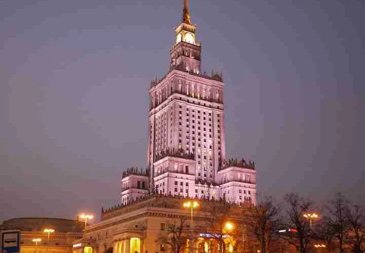 文化科學宮建成於1955年,高230米,是目前波蘭最高的建築,同時也是華沙市中心的地標性建築。文化宮位於中央火車站和中心捷运站中間,若是不小心迷失了方向,抬頭找找它就能回到原位,華沙的遊客中心也設置在這裡。整棟樓裡有會議廳、電影院、博物館、辦公室、展覽館等,定期還會有一些國家文化展。