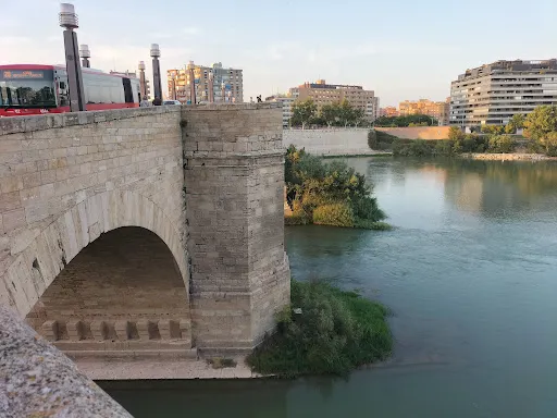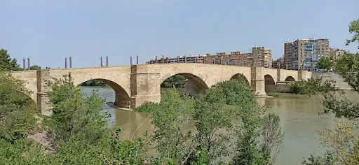 則評價橫跨薩拉戈薩埃布羅河上的石橋是這裏較早建立的石橋。早在12世紀,薩拉戈薩的居民就想在河上造一座石橋,終於15世紀上半葉他們得以夢想成真。這座橋在GildeMenestral的指導下建造而成。在1643年的洪水中,洪水沖毀了橋中間的兩段,在1659年橋被建築師FelipedeBusignac重建,並加強了橋墩。這座石橋又被稱作獅橋因為橋兩端的4根石柱上站立着4隻威武的銅獅子。