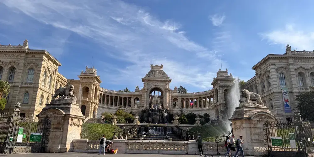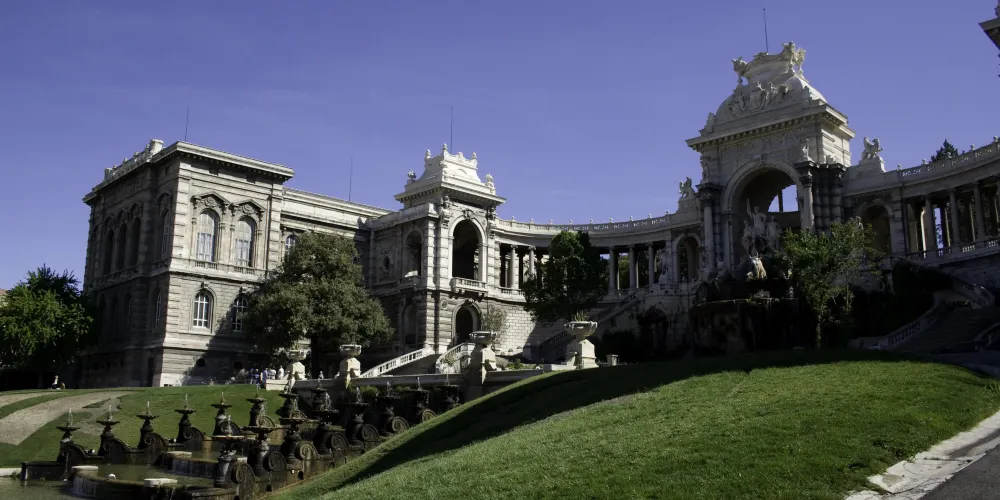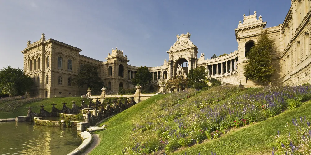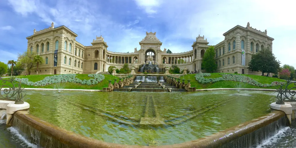 美術館所處的Palais Longchamp是一座擁有華麗建築風格的宮殿,建於拿破崙三世統治時期,整體風格融巴洛克、羅馬及東方建築於一體。它原本是一座水塔,在19世紀初時用於緩解馬賽的旱災,後人為了紀念這一工程,遂以水塔為基礎修建了這座宮殿。宮殿中間遍布群雕和噴泉,兩翼各延伸出一段迴廊,群雕中立者為河神,左右兩女神各持葡萄和麥穗,象徵著馬賽的釀酒業和農業。
