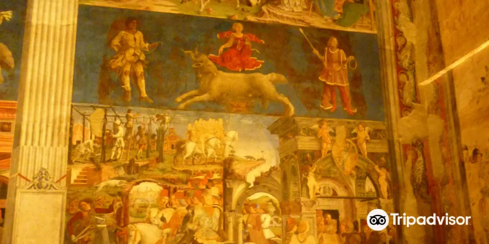 齊法諾亞宮建於14世紀是一棟豪華住宅。月鑒房外裝飾着FrancescodelCossa所做的壁畫,生動逼真,這些壁畫用來表示季節和月份,非常奇妙。