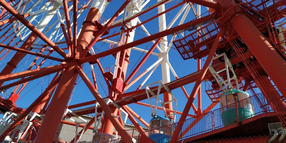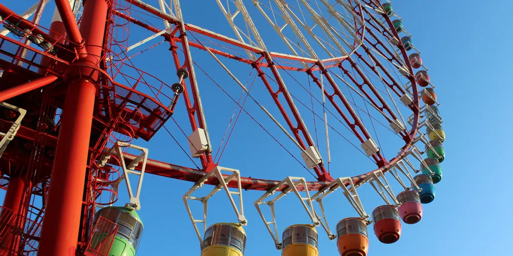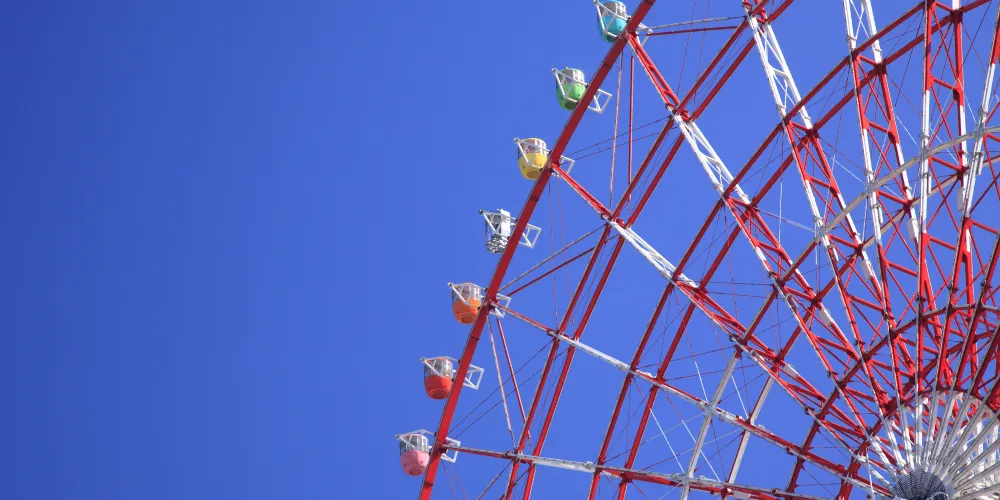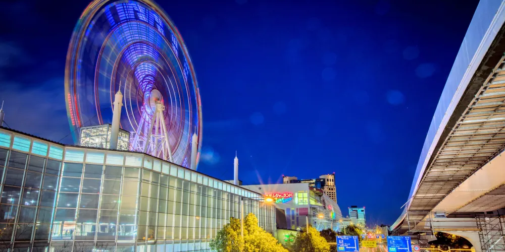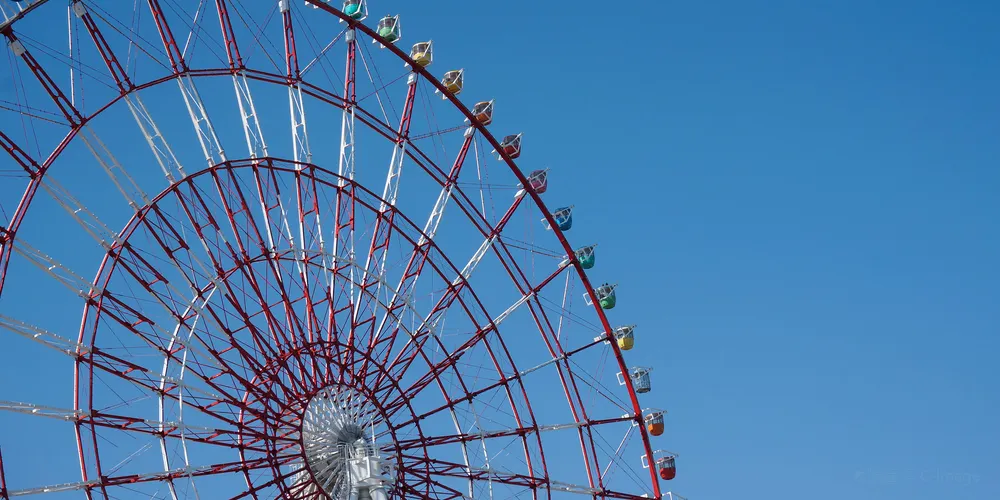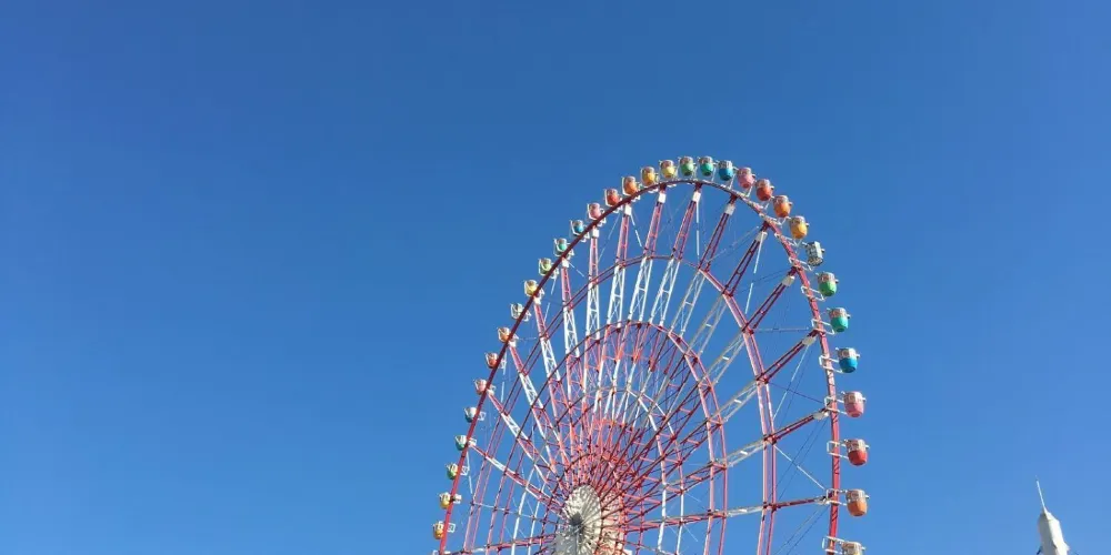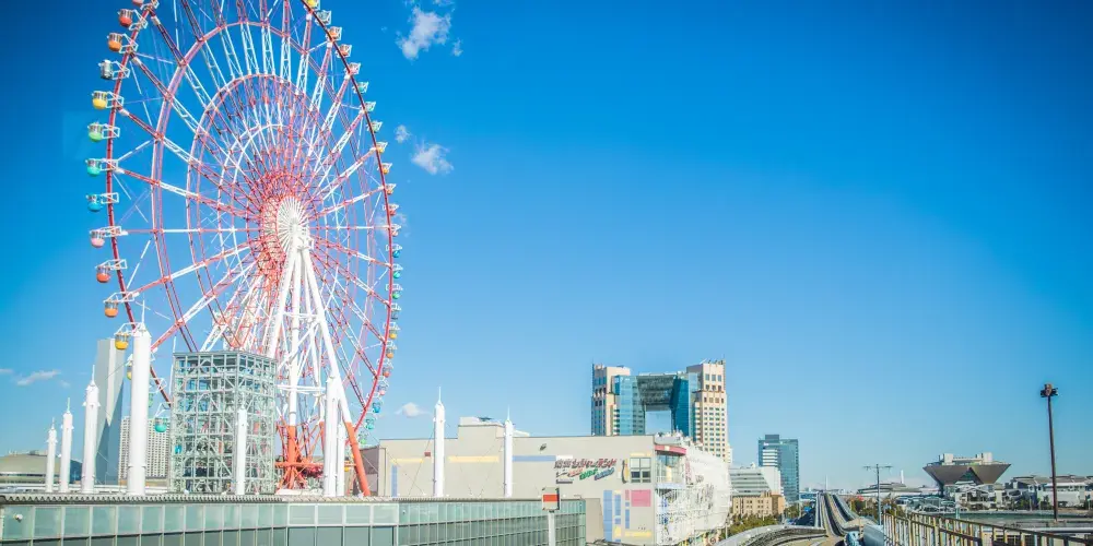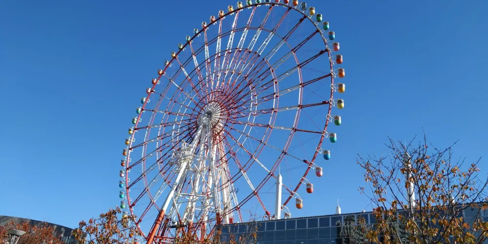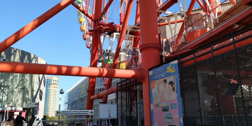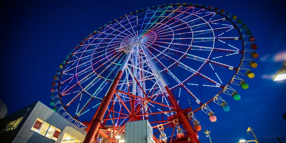 調色板城大摩天輪是台場的一大標誌,也是東京比較有名的摩天輪之一。在摩天輪上可以俯瞰彩虹大橋及台場全景,還能眺望到東京塔、東京晴空塔等都市景觀,天氣好的話更有機會遠觀到富士山。來到大摩天輪下,可以仰望到它上面掛著五彩繽紛的觀覽車廂。其中有打造成全透明樣子的觀覽車廂,能直接從空中看到腳底下的景物。