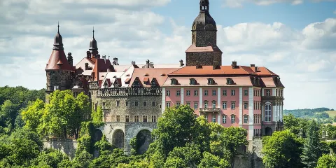 Palmiarnia是一座融合熱帶植物和歷史遺蹟的溫室花園,位於克雄日城堡(Zamek Książ)旁。這座建於19世紀末的溫室,由霍赫貝格家族建造,旨在為城堡增添異國情調。 Palmiarnia的建築風格獨特,採用了維多利亞時代的溫室設計,外觀典雅,內部空間寬敞。溫室內種植了來自世界各地的熱帶和亞熱帶植物,包括棕櫚、蘭花、仙人掌等,四季常綠,空氣清新。此外,溫室內還有小型的水池和小橋,增添了幾分浪漫氣息。花園內設有展覽區域,展示了霍赫貝格家族的歷史和克雄日城堡的演變過程。透過這些展覽,遊客可以更深入地了解這片土地的文化和歷史。