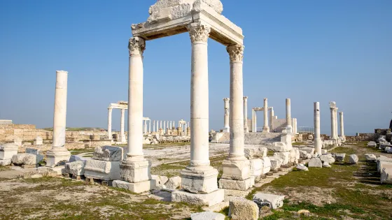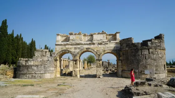 4.7 分216 則評價距離市中心1.2公里希拉波利斯位於棉花堡之上,建於西元前190年。在古代,溫泉連同山腳的石灰石被認為具有奇妙的魔力。遺址面積不小,古代公墓、大浴室、市集、拱門、圓形劇場、阿波羅神殿遺址、希拉波里斯考古博物館和古溫泉依序由北至南散落其間。從北門售票處進入,首先經過的是一座古代墓地,超過了1000座墳墓。繼續往前就是北大浴室,由石頭砌成的幾座相連巨型拱門是典型的羅馬建築。浴室旁是三座連續的拱門和圓筒形石堆,從這裡開始向南是一條貫穿遺址的南北大道,如今這條大道上多是斷壁殘垣散落,已被欄桿圍起。希拉波里斯考古博物館位於大道南邊盡頭,這裡有一個路口,從山下石灰華一路上就通往這裡。原是南大浴室,裡面展示了大量遺址裡出土的雕像和石棺,包括古典和古羅馬的雕塑藝術品、大量古幣及金銀首飾等。在此路口左轉,就是帕姆卡萊古溫泉游泳池。池底是羅馬時代遺址,溫泉水從底部不斷湧出,水質清冽,可以清楚看到斜躺池底的大理石柱和雕像殘片。古溫泉附近的圓形劇場保存完好,是值得參觀的部分。這是一座西元前2世紀建造的羅馬劇場,據說可以容納多達1.5萬名觀眾。正門處可以找到希臘神話眾神的雕像,在大劇場的前面還可以遙望阿波羅神殿遺址。希拉波利斯-棉花堡已被列為聯合國教科文組織世界遺產。在日落時分分外美麗,金色的斜陽餘暉穿過拱門照射在古老的石頭上,那份滄桑之美令人難忘。Ancient Temple Of Apollon