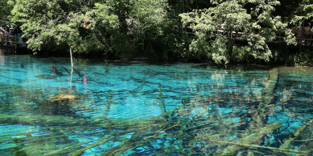 箭竹海中有一種奇特的景觀,即是湖水中有一些鈣化形成的枯木,有時枯木半露出水面,在上面還會有新生的樹苗紮根,這種現象稱為腐木更新,或枯木逢春。