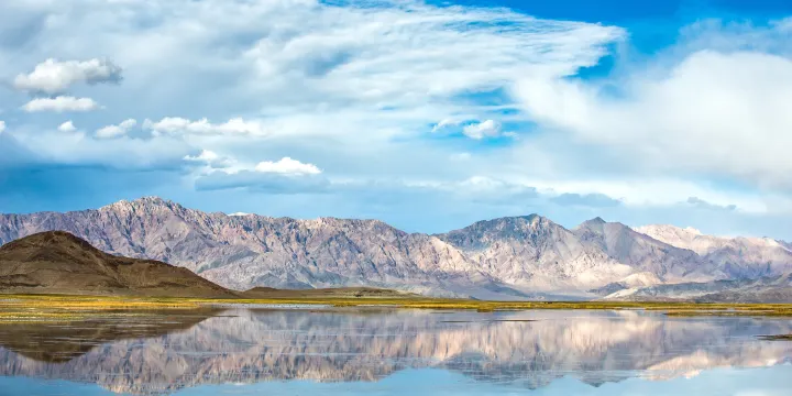班公錯也叫班公湖,藏語稱“錯木昂拉仁波”,意為明媚而狹長的湖泊,位於阿里地區日土縣北部約12公里處,是中國日土縣與印控克什米爾交界的“國際湖泊”。班公措湖面狹長,呈東西走向,長約155公里,湖水東淡西鹹,日土縣境內為淡水,西部與克什米爾交界處為鹹水。班公湖周邊景色秀美,四周羣山環繞,遠處雪山點點。湖水清澈,能見度為3至5米,由於光照、深淺、亮度等因素,呈現出墨綠、淡綠和深藍等不同的顏色,非常漂亮。到了夜裡,星空點點,寬闊的水面倒映着天空,寧靜深邃,這時的夜景也別有一番韻味。湖中有十多個大小不等的島嶼,有名的當屬鳥島。島上約有各種鳥類20多種,數量多時可達數萬衹,主要的鳥類有:斑頭雁、棕頭鷗、魚鷗、鳳頭鴨、赤麻鴨等,其中屬斑頭雁和棕頭鷗數量較多。從岸邊乘船約30分鐘即可抵達鳥島,不過,出於對鳥類的保護,不允許登島,衹能環繞着鳥島欣賞這個神奇的鳥類王國。班公措湖畔有幾家餐館,以湖中特產的裂腹魚為主要噱頭,不過出於對環境及物種的保護,不建議食用。如果不想在湖畔用餐,乘車約半小時即可返回日土縣城用餐。