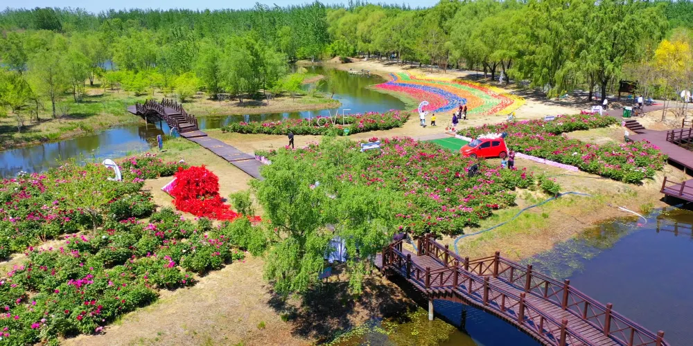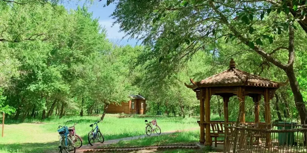 景區內依地勢建有6.6公裡單車騎行道。遊客進入園區後,“動”可騎行遊園,“靜”可觀鳥賞花。景區內一年四季皆有美景:春有百花,秋有紅葉;夏有清風,冬有白雪。集林、花、水、丘於一地,融永珍之美於一體,素有“盤錦天然氧吧”的美譽。