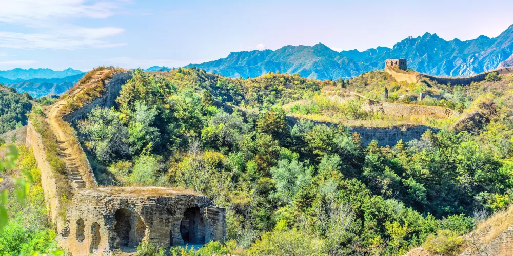蟠龍山長城位於北京市密雲縣古北口鎮古北口村境內,是古北口長城的一段。蟠龍山長城與西面的卧虎長城、水關長城、鐵門關、甕城共同構成了古北口長城防禦體系的核心,在歷史上是重要的軍事要塞。蟠龍山長城全長5公里,蜿蜒於羣山峻嶺、深溝險壑之中,極目遠眺,宛然依山盤旋着的巨龍。由於這段長城還沒有進行過太多的修復,顯得古樸蒼涼,但也保持着完整的歷史風貌。其中為精華的便是將軍樓和24眼樓。將軍樓是蟠龍山長城的制高點,它共有22個門洞,保持着當初的模樣,顯得氣勢恢宏。這裡是設定指揮機關的地方,戰爭中這裡是敵我雙方爭奪為激烈之地。二十四眼樓是蟠龍山長城東面後一座敵樓,與將軍樓遙相呼應。二十四眼樓共有三層,一、二層四周各有三個箭窗,頂層周圍是垛口。它一共有24個瞭望口,在長城建築史上並不多見,十分珍貴。站在這段古樸的長城上眺望遠方,景色壯觀輝煌,令人感到一種歷史的滄桑感。